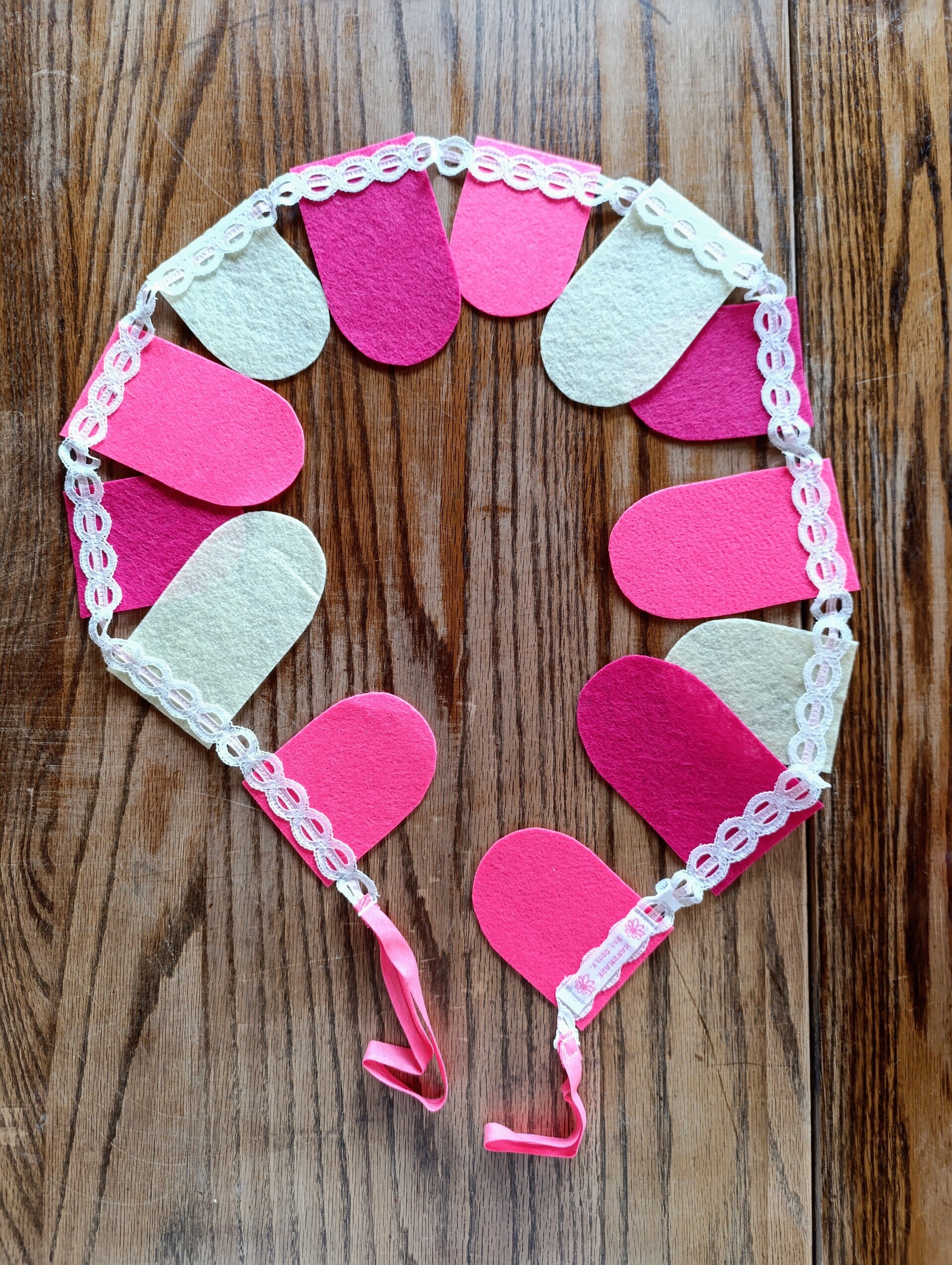 Handgemaakte feestslinger voor aan een deuropening, bed,...Vilt en katoen1m lang.